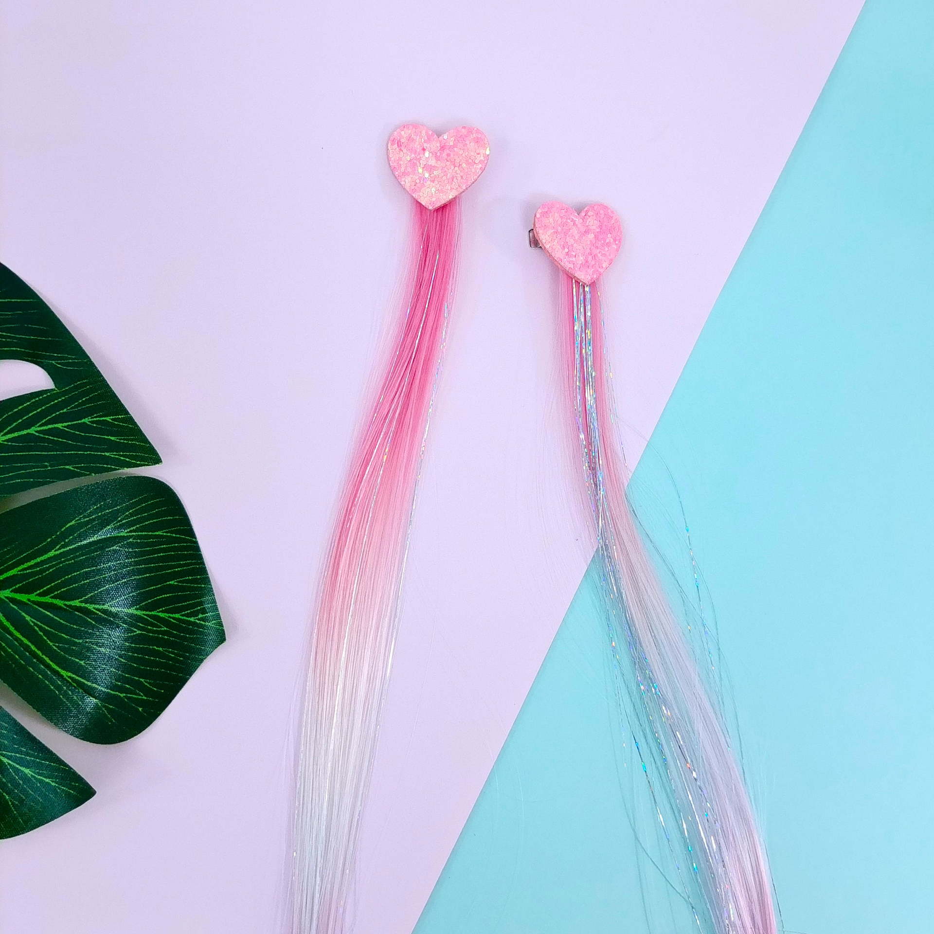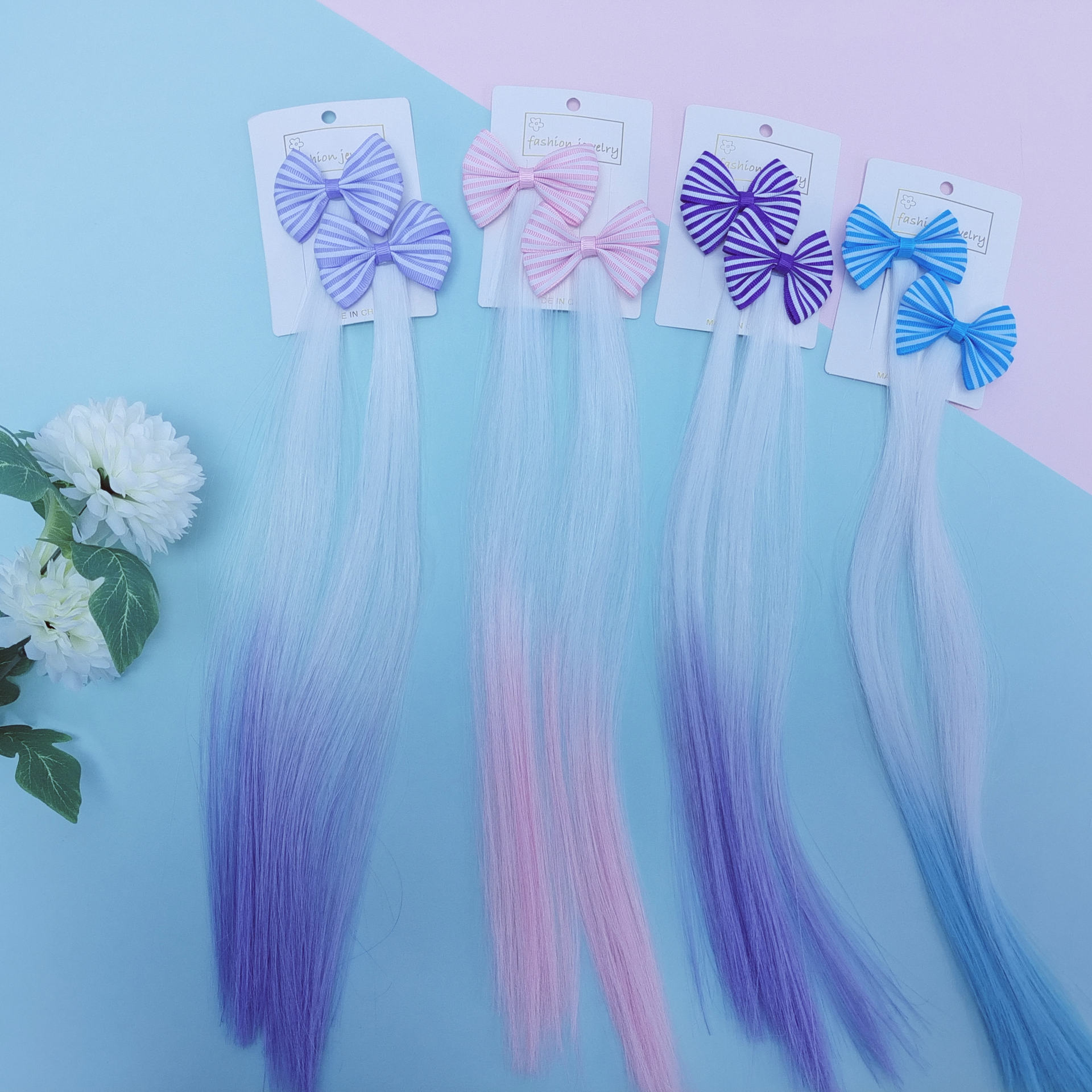 新商品の卸売りの甘い韓風の子供の髪飾りのピンクの愛のグラデーションのまっすぐな髪のかつらのカードのスーツの子供のヘアピン