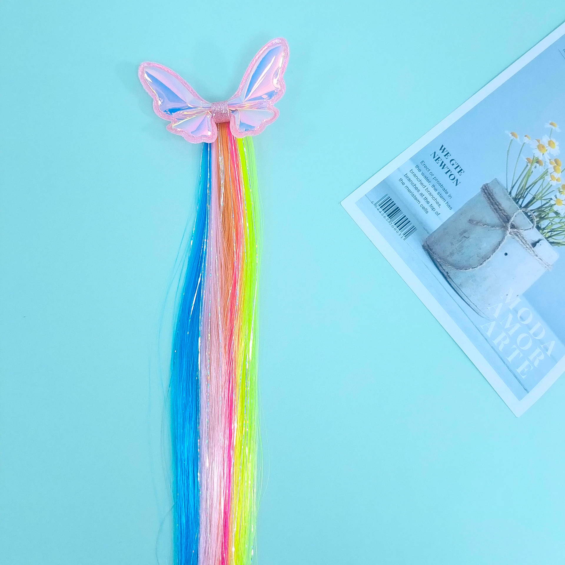 卸売りの新型子供の髪飾りの刺繍の蝶のカールのかつらの子供の髪のカードの韓国版の甘い樹脂の蝶のストレート髪