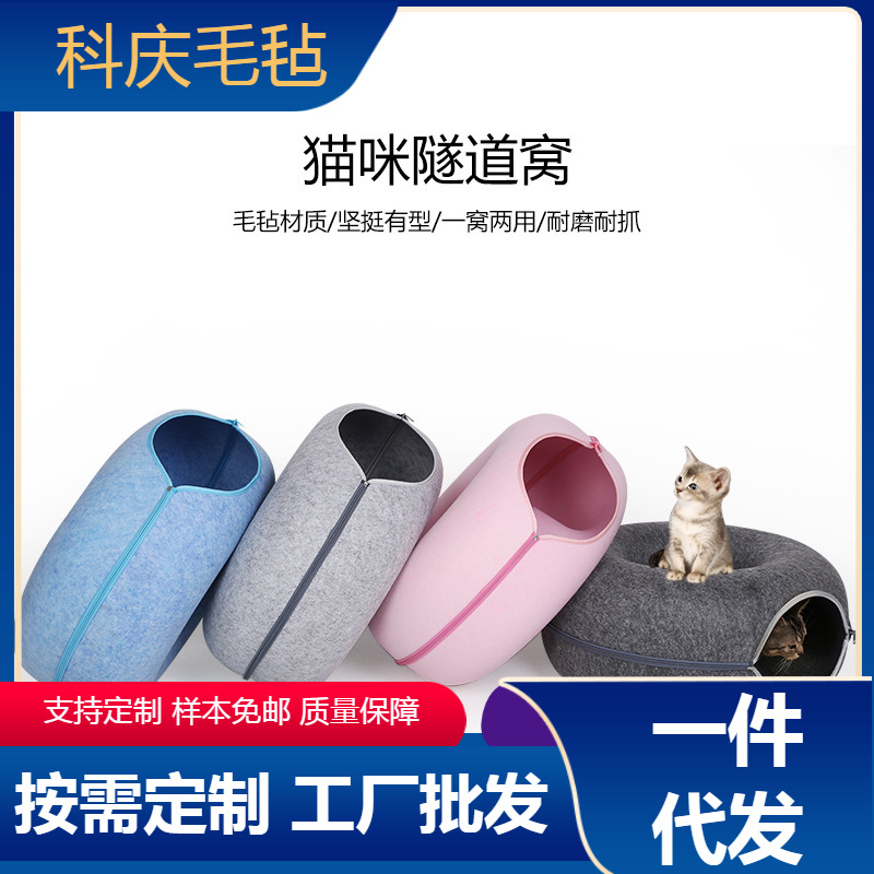 クロスボーダー供給フェルト猫の巣トンネルドーナツフェルトペットの巣半閉鎖式は四季を通じて利用できます。