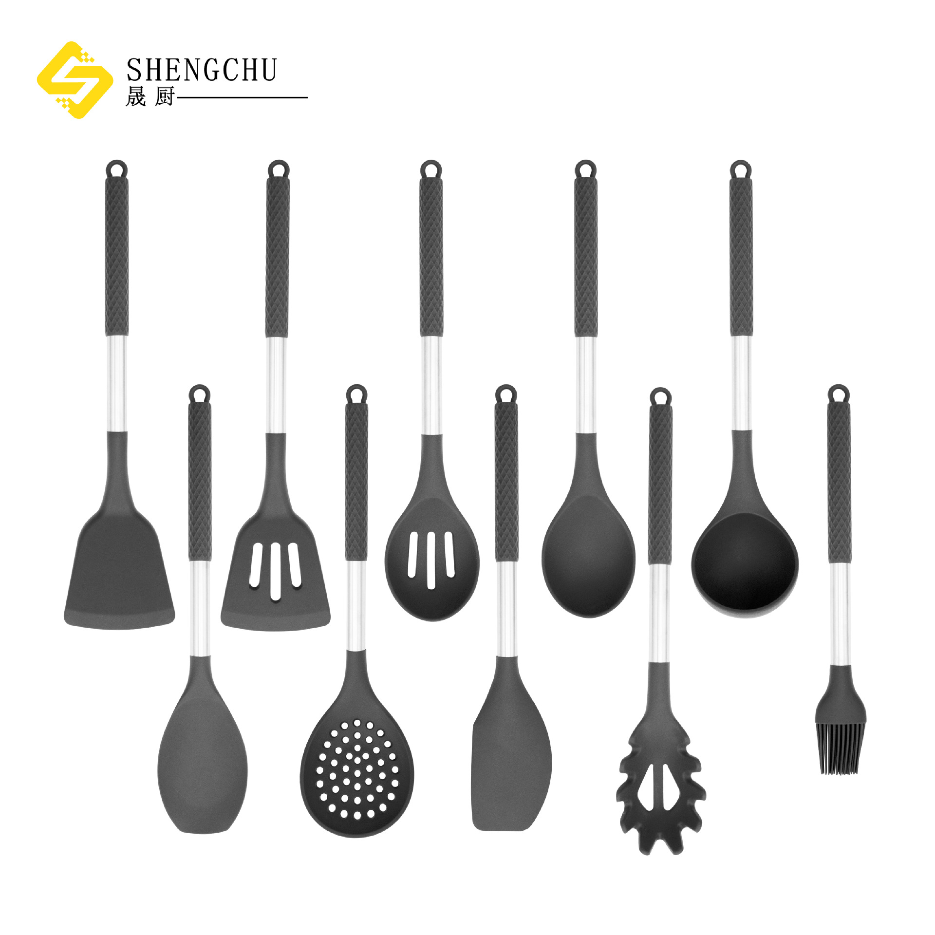 新型ステンレスシリカゲルカバー取っ手シリカゲル調理器具セット高級10点セット調理用鍋にくっつかないスプーン調理器具