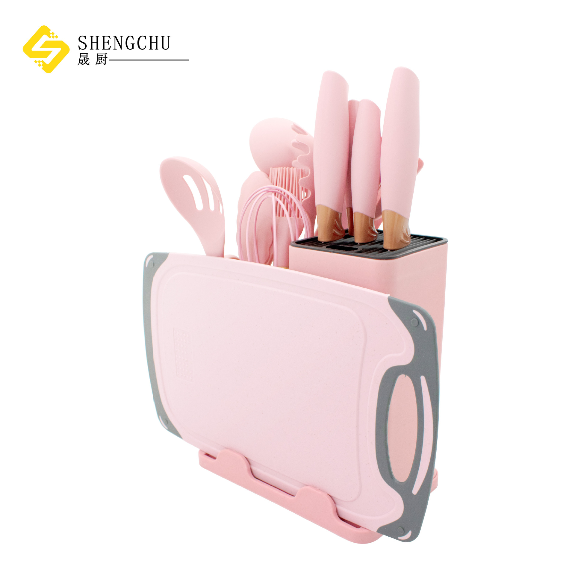 電気商現物木柄シリカゲルセット調理器具セット19点セット刃物収納桶付きプラスチックまな板