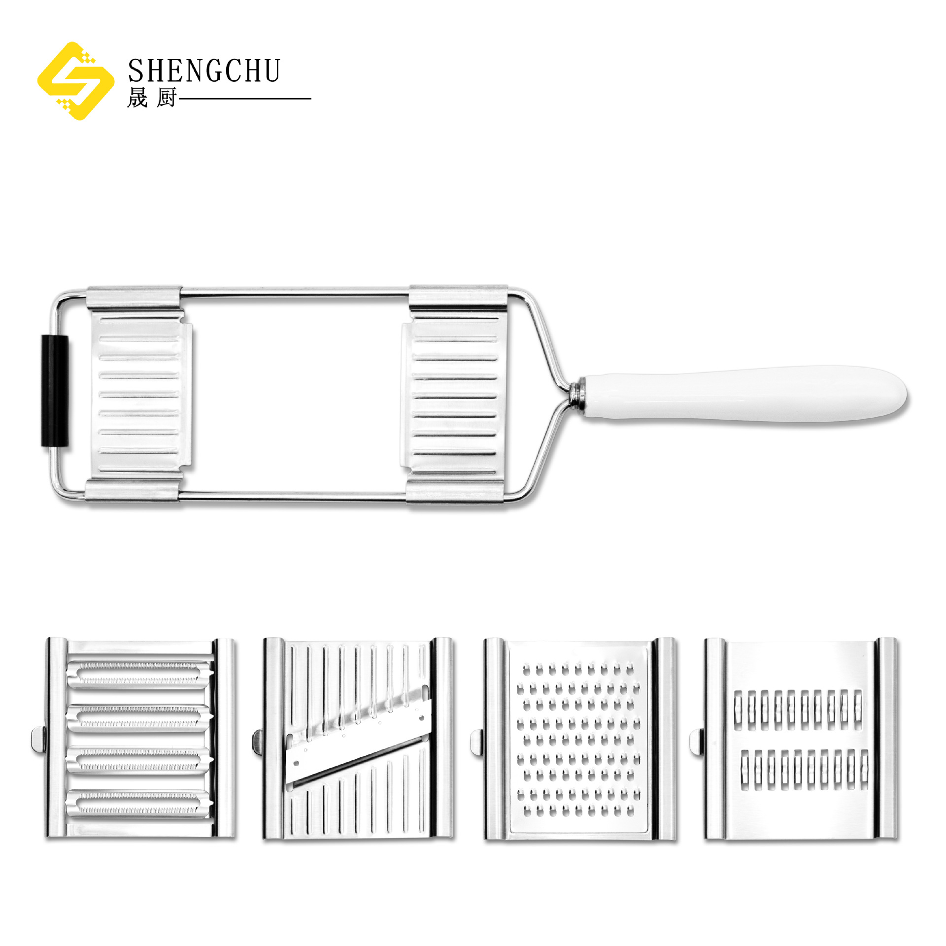 ステンレス多機能四合一かんな器は皮むき刀ジャガイモ大根青瓜切り器姜にんにく蓉を切り替えることができる