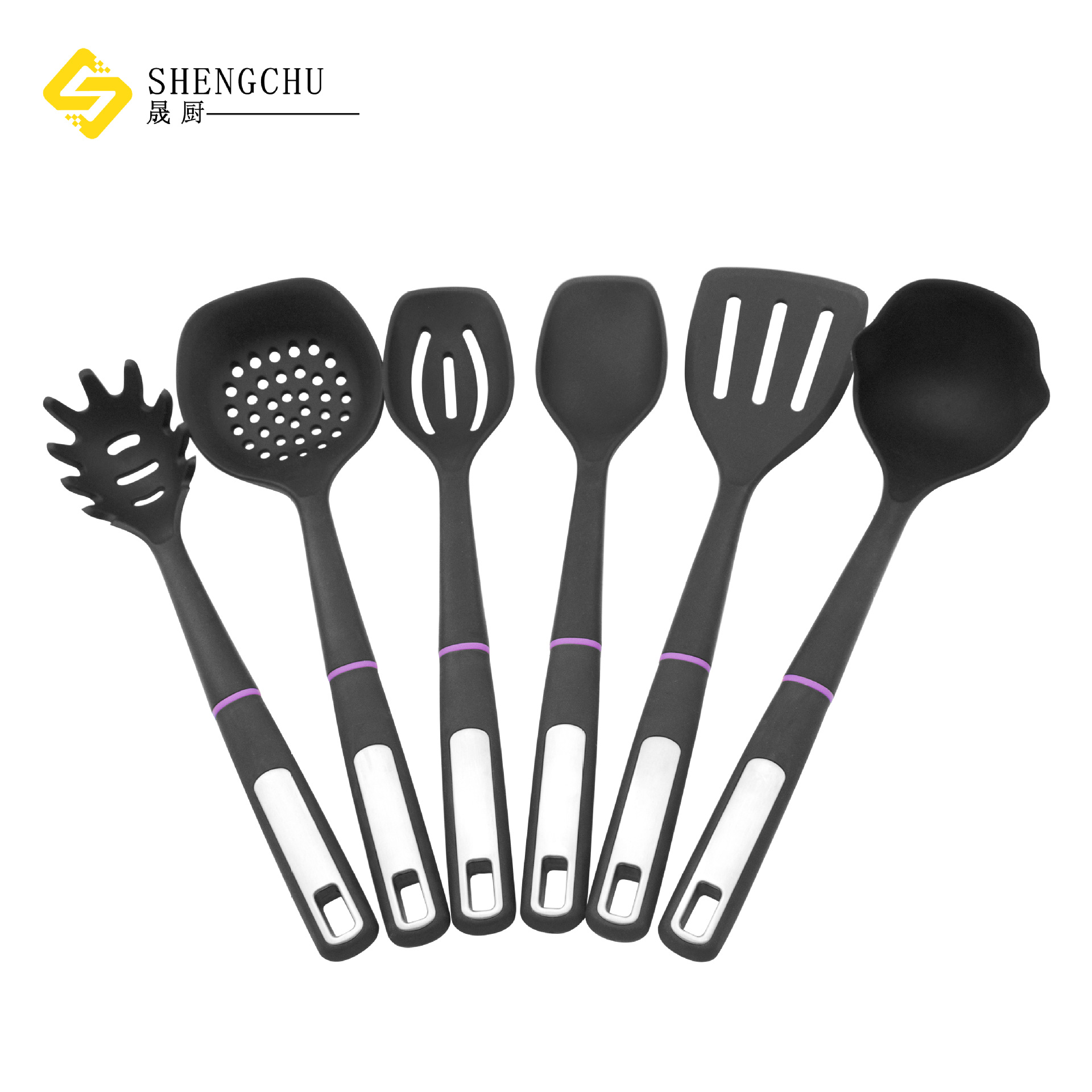 新しいシリカゲルバッグナイロンスプーン6セットの調理調理調理器具は鍋にくっつかないナイロンセットのプラスチック柄シリカゲル調理器具です。