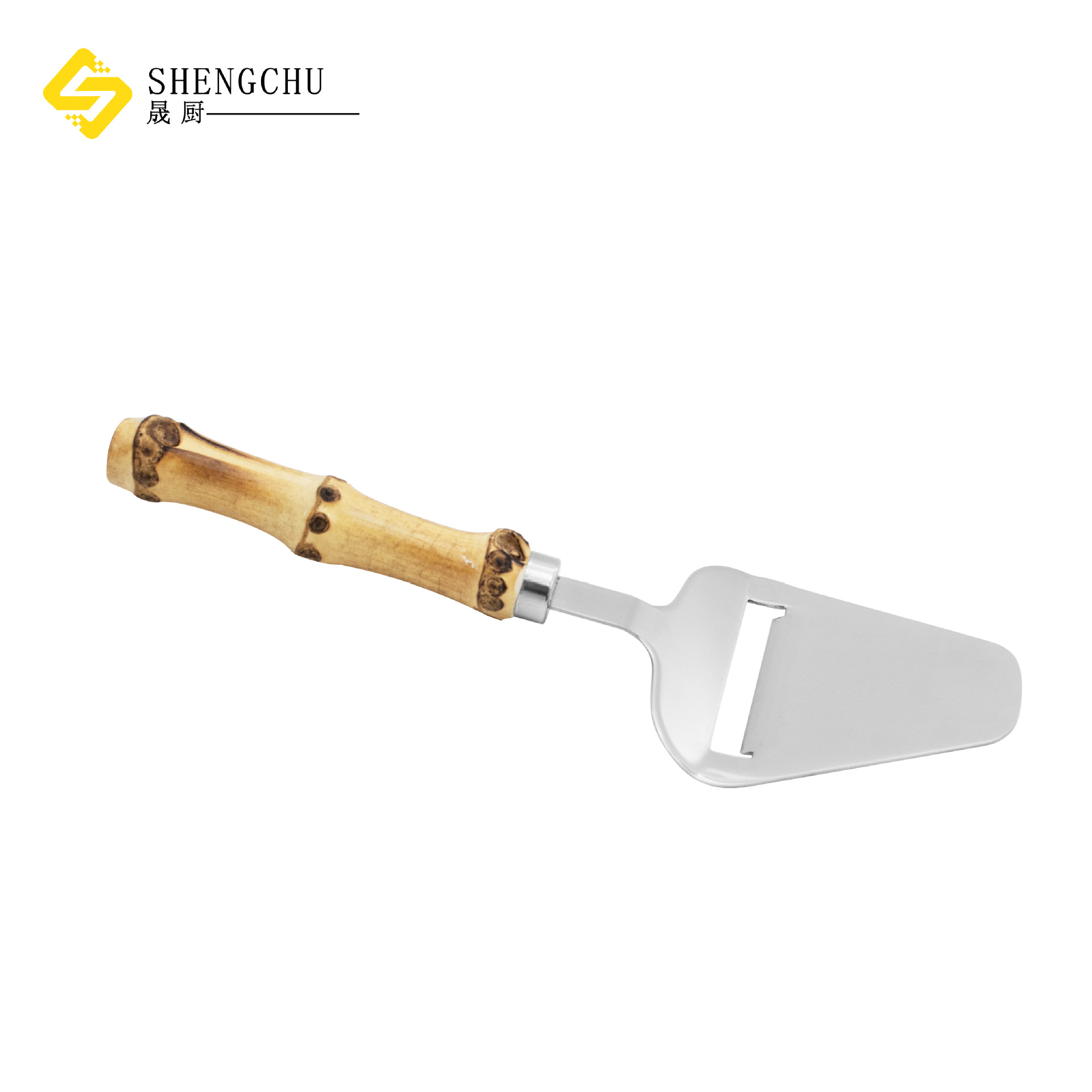 日本式の新しい竹の節の取っ手のチーズのシャベルのステンレスのピザのシャベルの焙煎ツールの三角シャベルの台所の料理シャベル