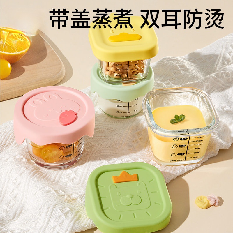離乳食サプリメントボウル、ガラス製蒸し保存保存卵蒸しボウル、カップ型ツール、離乳食サプリメントボックスのフルセット