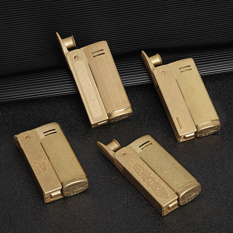 ゾロ真鍮純銅 Langsheng サイドスライド音鋼音砥石灯油ライターレトロコレクション ZL6 Langsheng