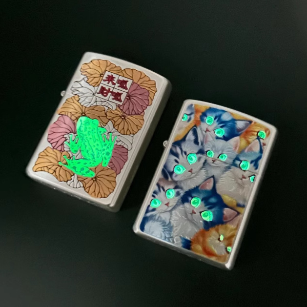 ゾロ二代防風灯油ライター グアグアライカイ カエル 銀メッキ砥石 夜光Z2