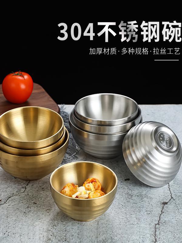 304 ステンレス鋼韓国ライスボウル幼稚園スープボウルねじ込みゴールデンヌードルボウル子供用二重層断熱小ボウル