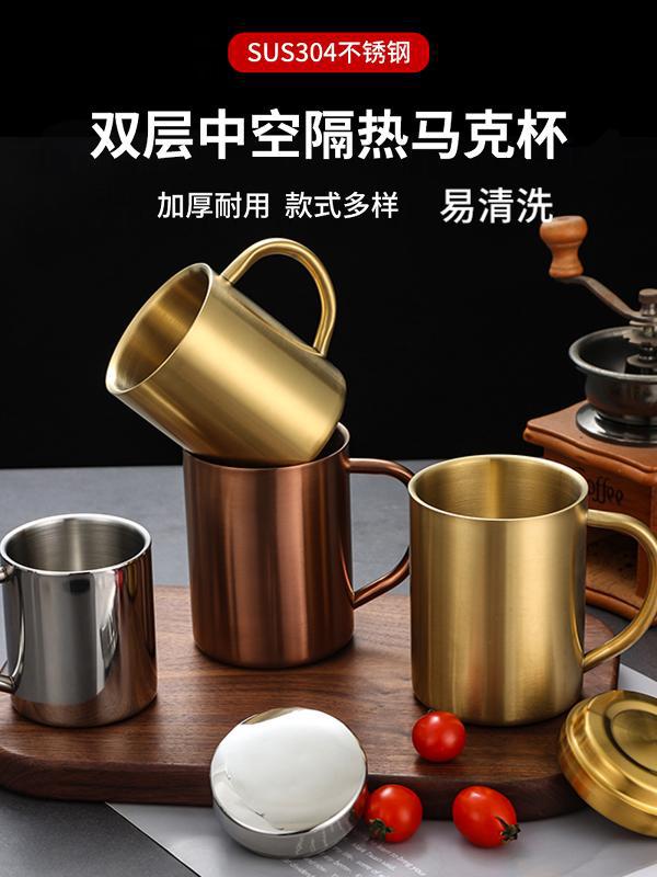 304 ステンレス鋼幼稚園ウォーターカップ子供マグ韓国ゴールデンレストランティーカップ蓋付き二重層断熱カップ