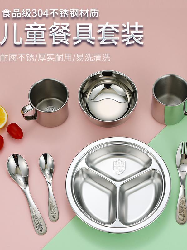 304 幼稚園子供用食器漫画ディナープレート小学生ウォーターカップベビー箸ナイフフォークスプーン火傷防止ボウルセット