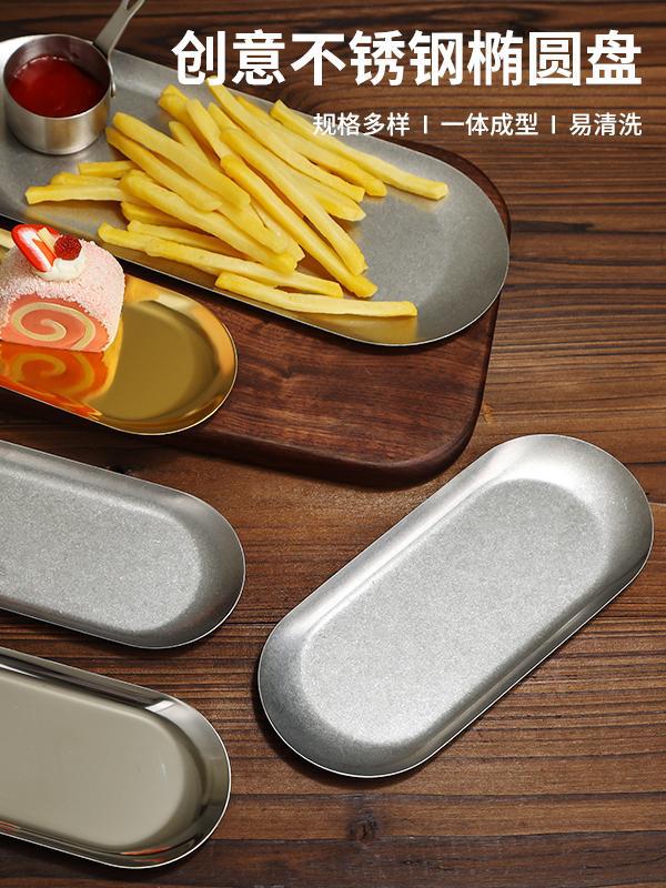 レトロなスタイルのステンレス鋼の楕円形プレート和風ジュエリートレイインクリエイティブレストランデザートペストリープレートゴールデントオル