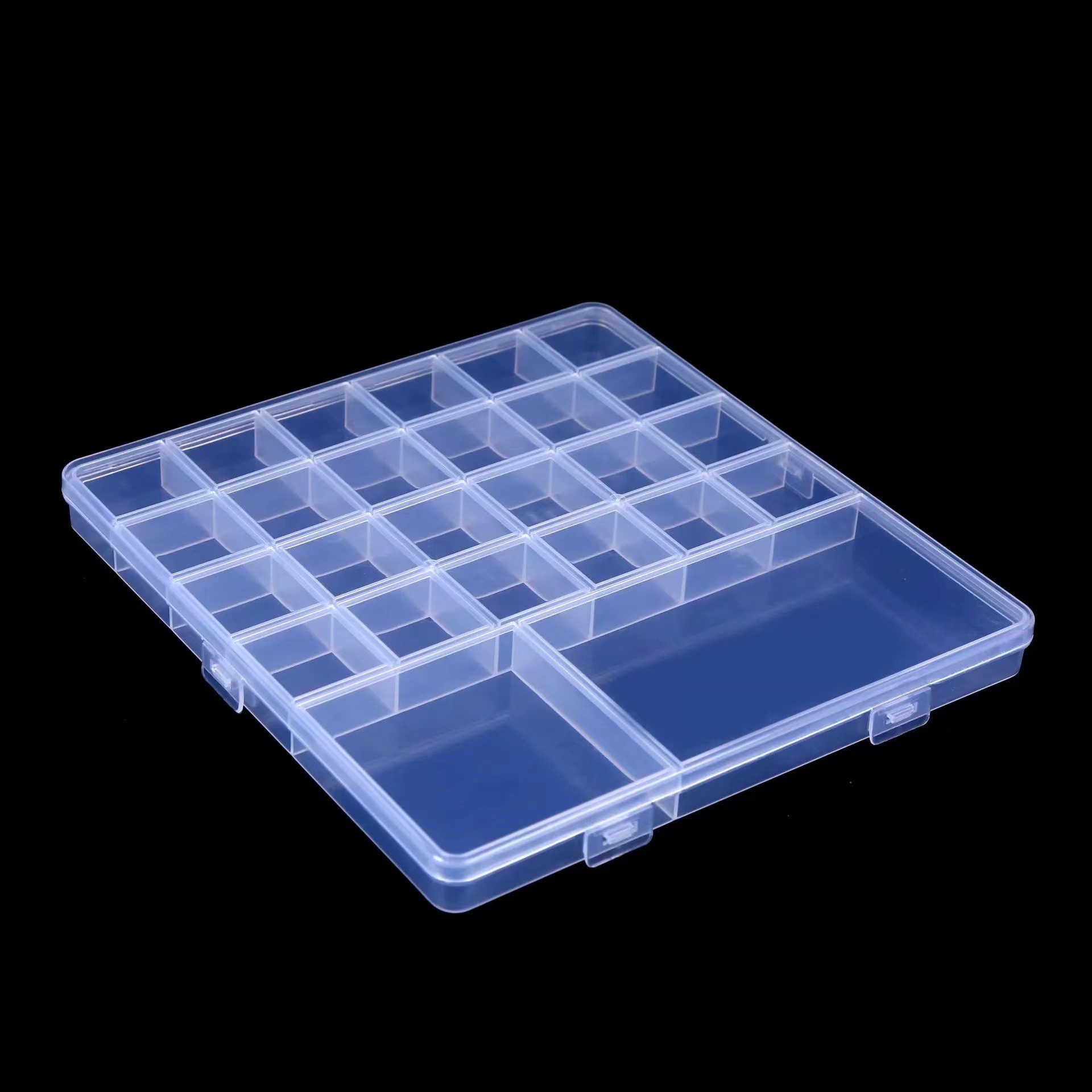 新しい 25 グリッド透明プラスチック収納ボックス収納ジュエリーツールコンポーネントボックスビーズ漁具包装ボックス蓋付き