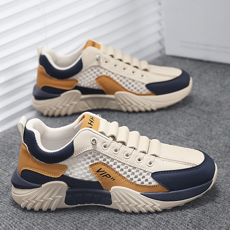 2025夏のネットの顔の通気性の小さい白い靴の厚い底の韓国版の原宿の風の運動靴の個性の屋外のレジャーの男性の靴の潮