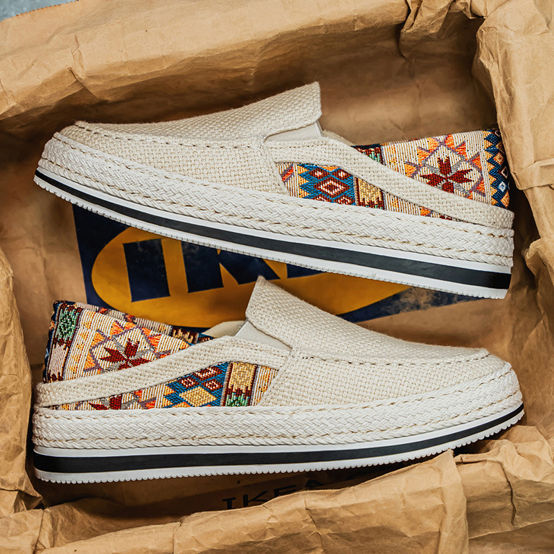 2025外国貿易草編みコーデュロイ布漁師靴ins民族ショー香港風学生スポーツシューズ韓国版レジャー