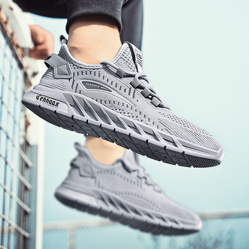 春夏のクロスボーダー国民トレンドスタイルの高品質フライウーブン通気性スポーツシューズ、トレンディなロートップレースアップアウトドアカジュアルメンズシューズ