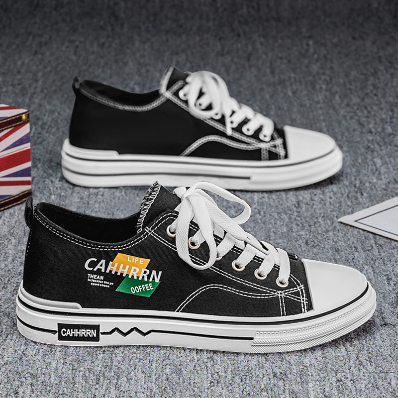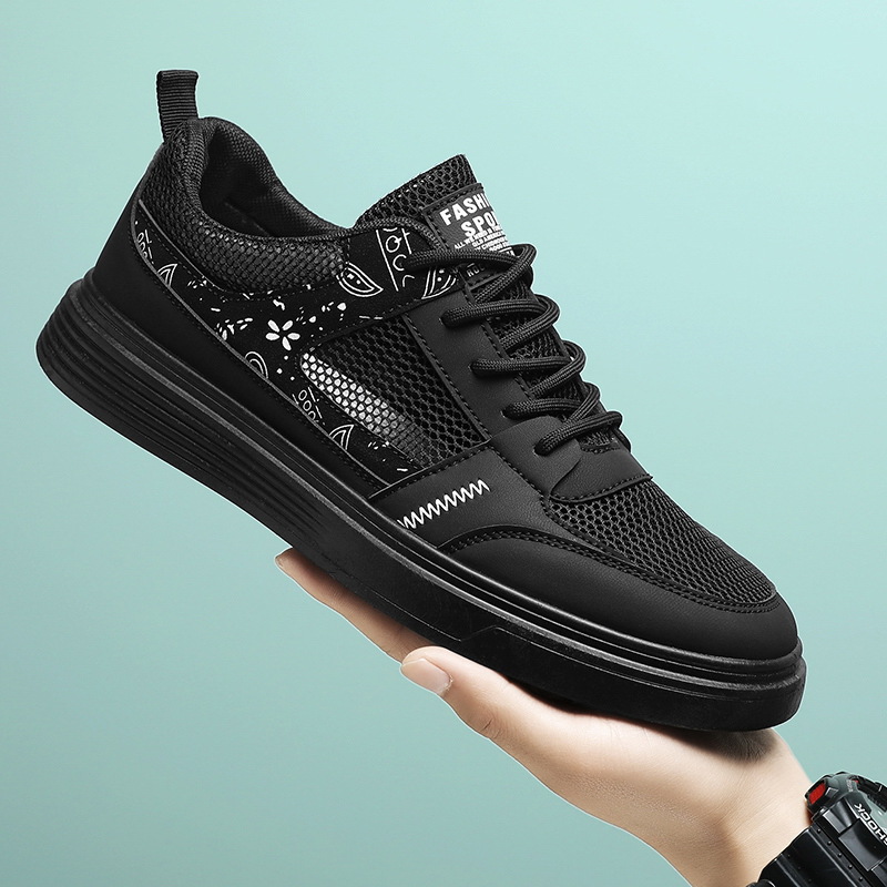 2025 春夏 Douyin 学生原宿スタイル通気性スポーツカジュアルシューズロートップスニーカーレザーブラックウォリアーワークウェア