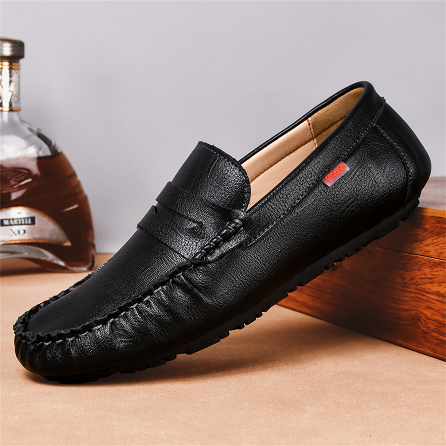 2025夏の男性の軽い豆の靴は足の牛革の対外貿易の大きいサイズの靴をかぶせます。