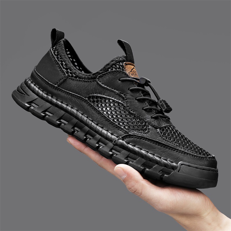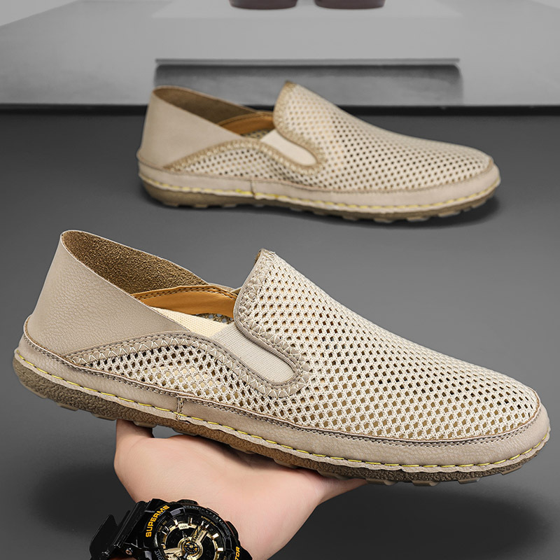 2025高品質男豆靴牛皮通気ネット面夏低助開車靴ファッション靴カジュアル靴運動男靴