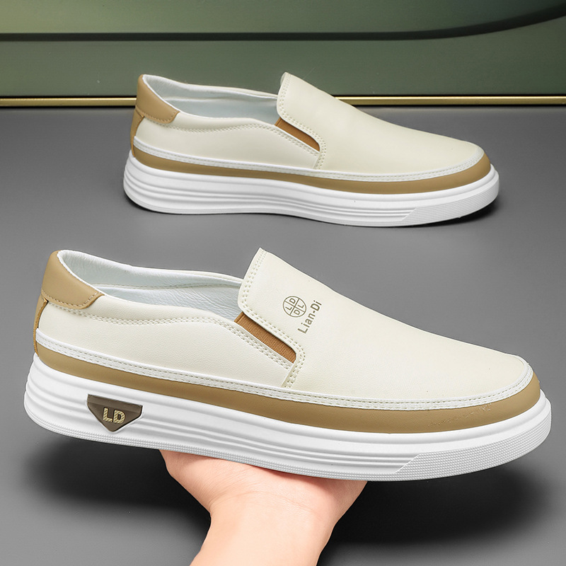 2025春夏の新型皮面通気運動板靴個性ショー豆男靴香港風生放送運動靴男