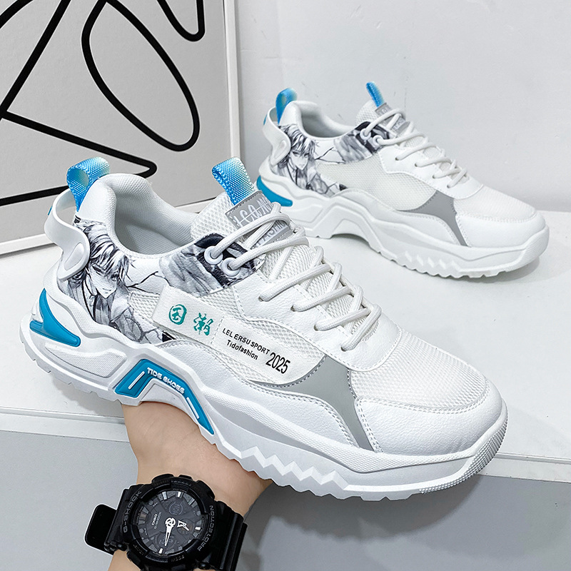 2023クロスボーダー男性用靴超軽量春の厚い底カジュアル運動靴百合insアウトドアランニング靴ココナッツ靴