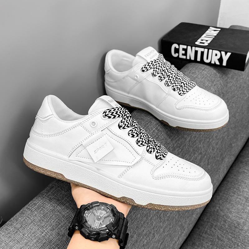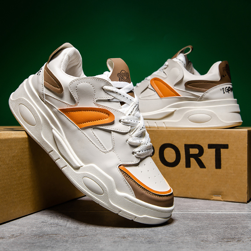 四季型の男性靴の生放送タイプの厚い底の港風の白い靴の松の餅の街頭の潮は皮の面の韓国版の板の靴の男性の卸売りに乗ります。