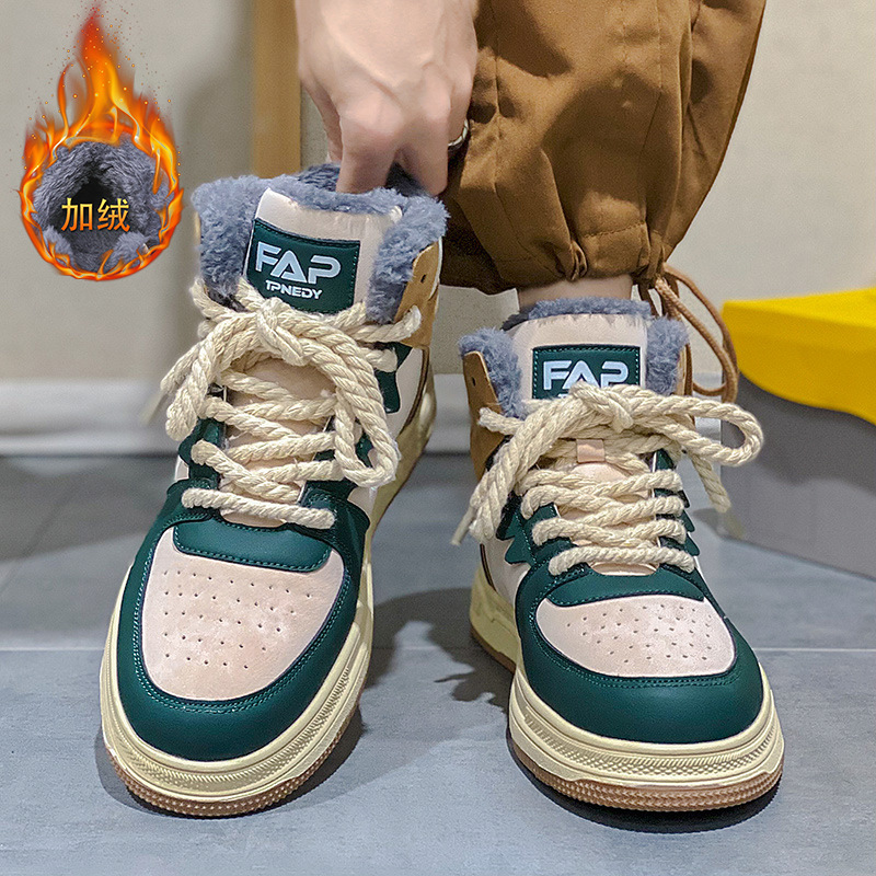 秋冬の新しい厚い底のファッションの板の靴とベルベットの保温の屋外の学生のファッションはショーの男性の靴の復古の工装の靴の卸売りを乗ります。