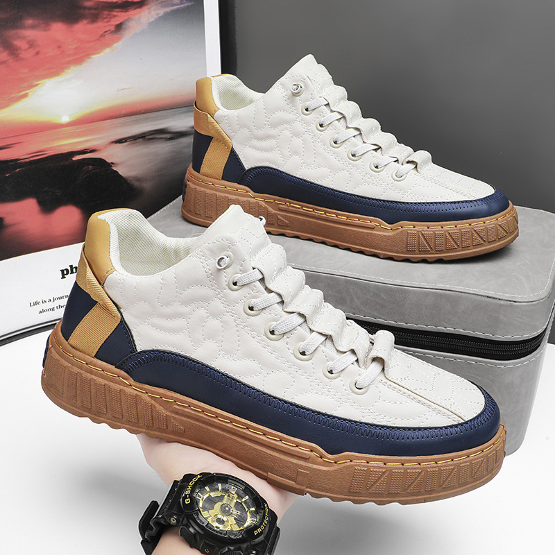 四季型の中で皮面の厚い底を助けて個性の防水の潮流の香港風の運動の白い靴の学生の男性の靴の卸売りを手伝います。