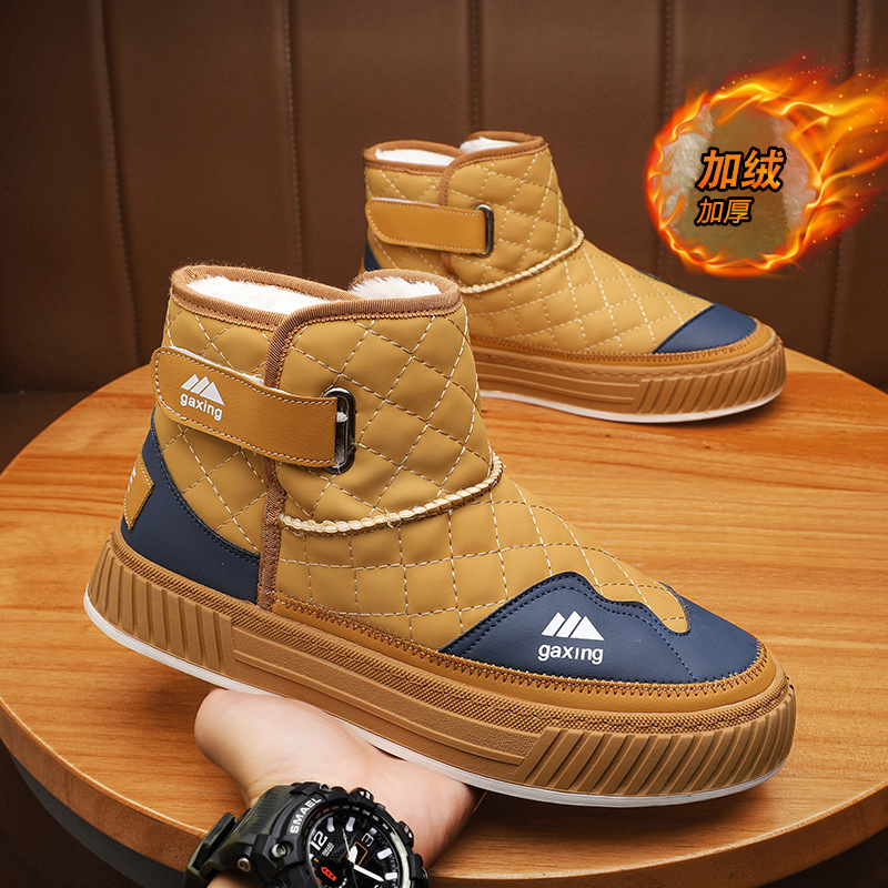 冬の新型ベルベットを生放送して保温した屋外の雪地靴の皮面防水の流れを厚くして、足の綿靴男を軽くしている