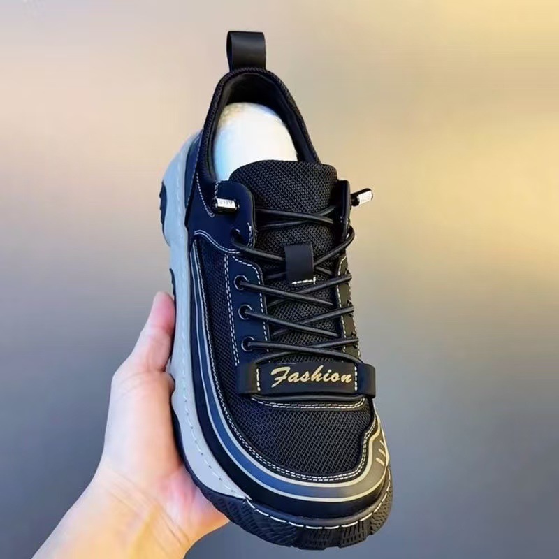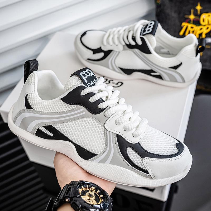 ライトラグジュアリーデザイナー2025シンプルスタイルコントラストカラーヒョウメッシュ厚底カジュアル通気性スポーツシューズメンズランニングシューズ
