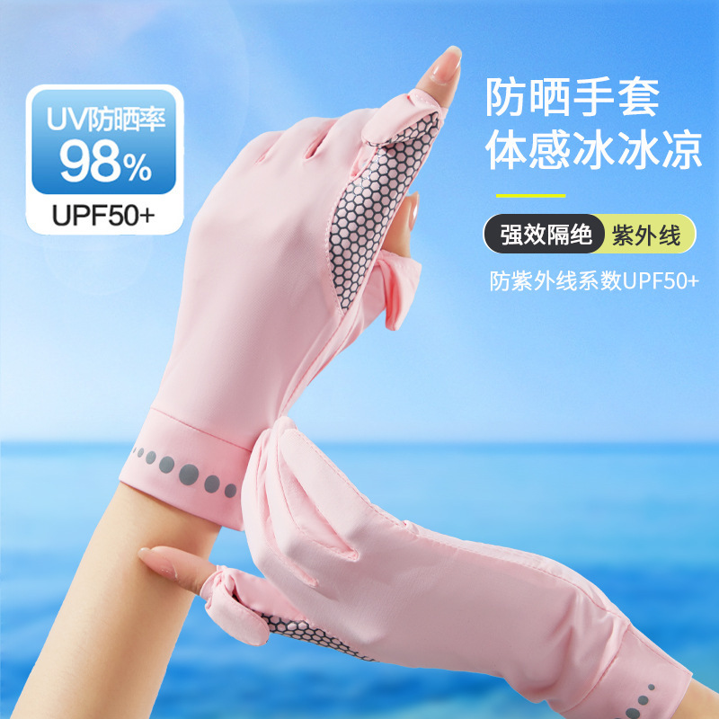 延長氷糸日焼け止め手袋紫外線通気防止手袋滑り止め指タッチパネル氷袖日焼け止め手袋