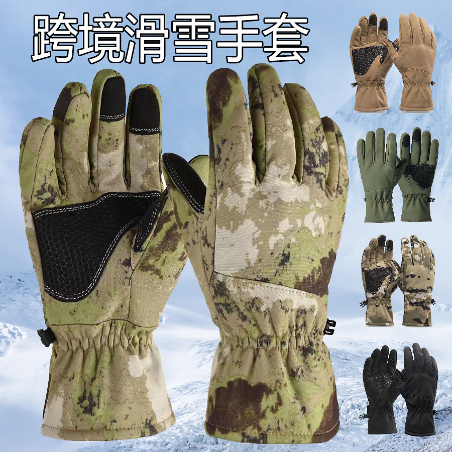 冬のスキー手袋にベルベットをつけて保温屋外電気自動車自転車防寒防風防水タッチパネル迷彩を厚くする