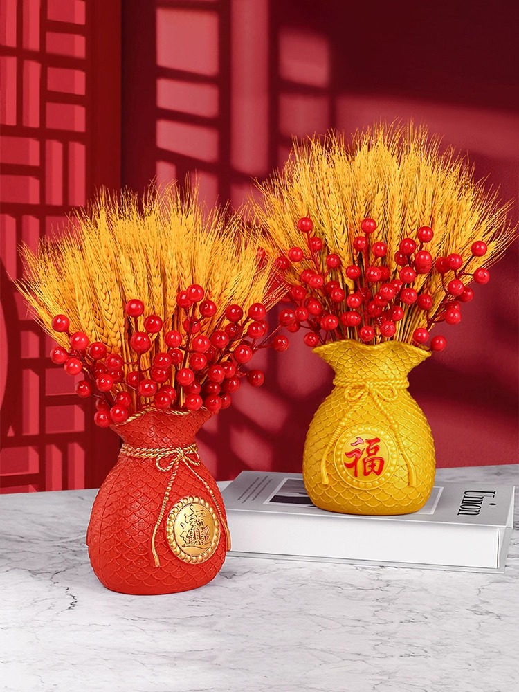 天然オオムギのドライブーケ福袋銭袋客間飾り金黄麦穂が開店した