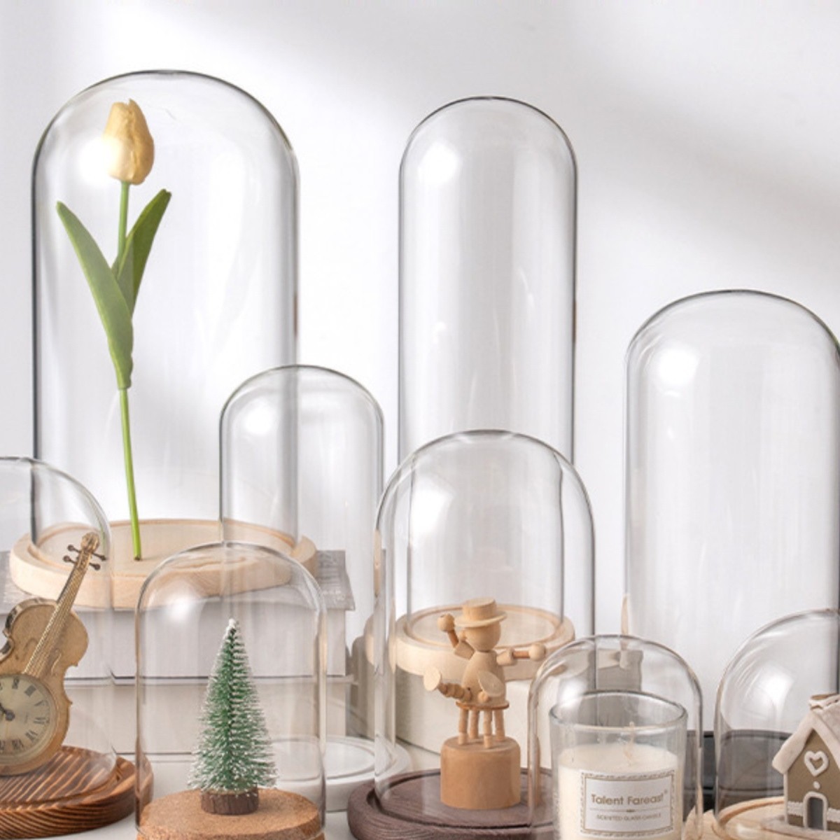 プロモーション新型花ガラスカバー透明展示箱人形クリスマスツリー積み木手型デスクトップ装飾品