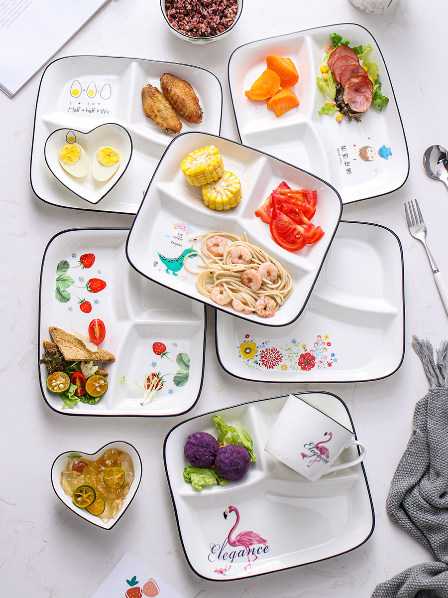 分格減脂分食皿家庭用家庭用朝食食器子供用陶磁器仕切りダイエット定量皿のいっぱい
