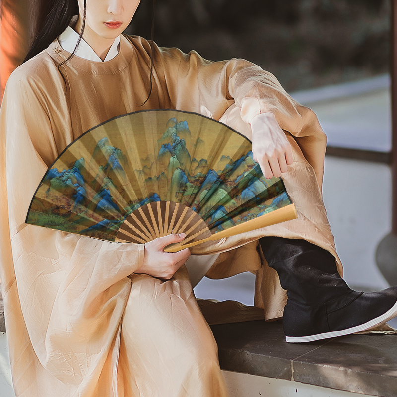 千里江山図扇子中国風男性女性服絹布夏古風プレゼント扇子来図定の満
