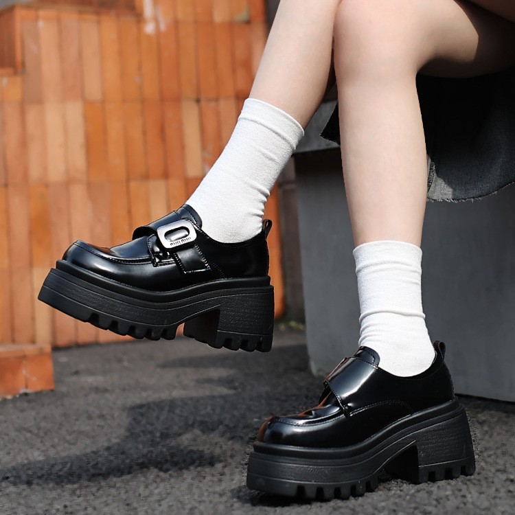 女性のための小さな革靴 2025 秋の新厚底本革英国スタイルラウンドトゥシングルシューズ金属バックルソフトソールローファー