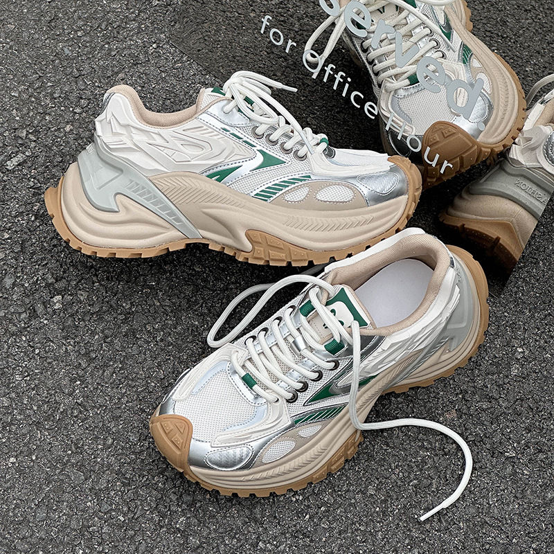 スパイダーダッドシューズ女性 2025 新レトロポリッシュカラー古いトレンディなスニーカースポーツオールマッチ厚底増加靴