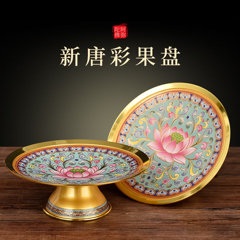 合金神前供盤果物皿供神用品貢盤観音財神爺招財蓮花神具トレー供養
