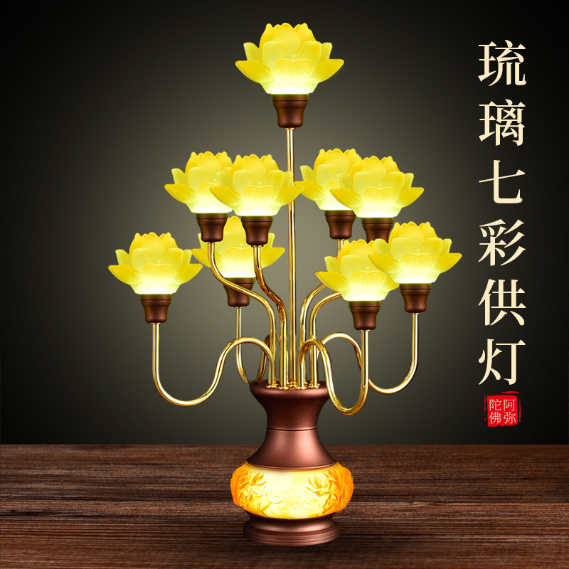 神様用のカラフルなLEDガラス蓮ランプ、寺院用の神様用ランプ、13品の神様用ランプ、神様用ランプ、常夜観音ランプ