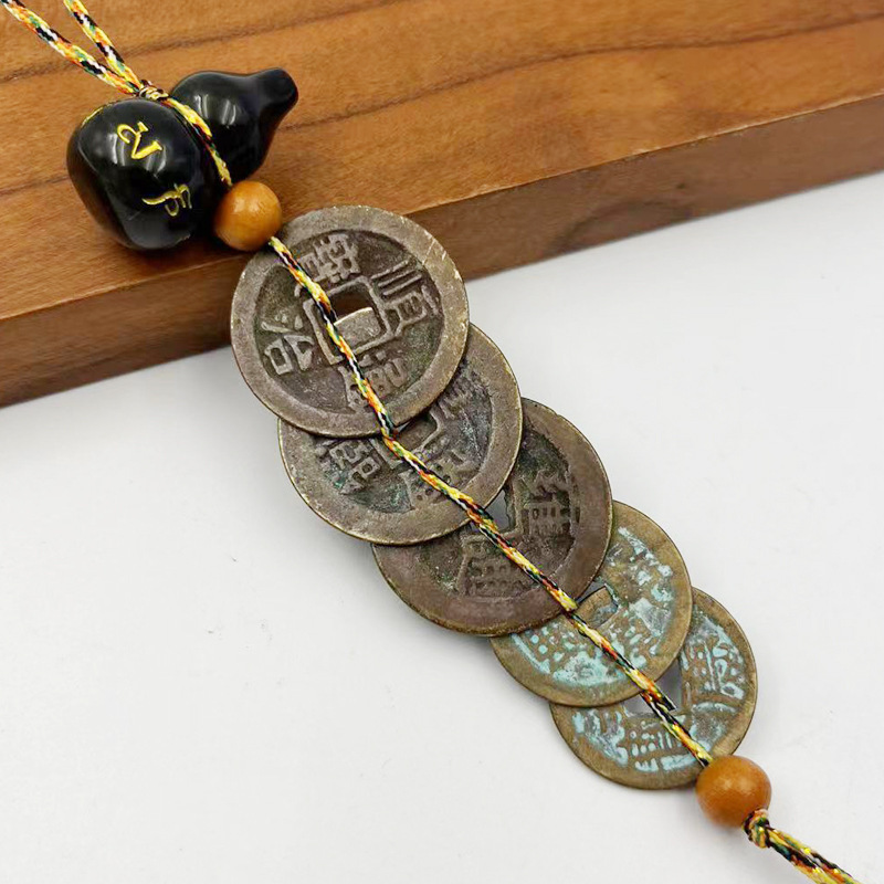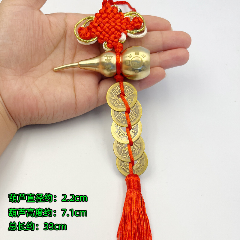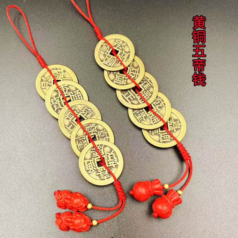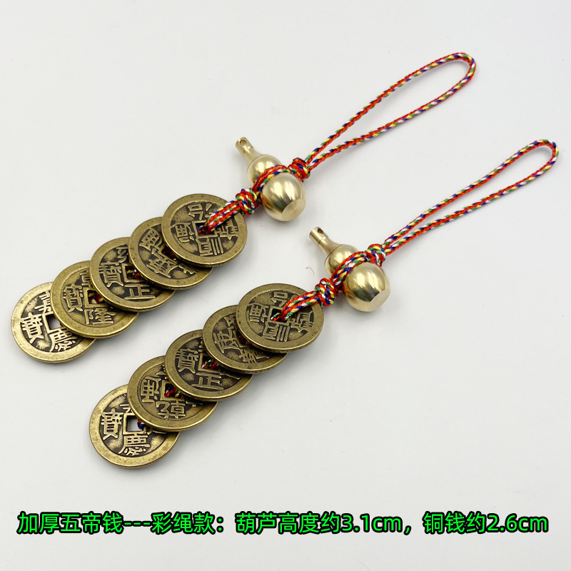 五帝銭純銅黄銅開口ひょうたん模造古銭車ストラップ家庭風水門対門宝飾品五帝銭