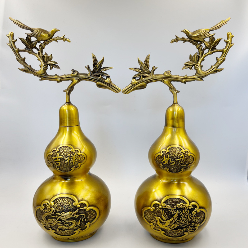 真鍮製喜上眉間吉祥如意龍鳳銅瓢箪ホームオフィスリビングテーブル置物装飾