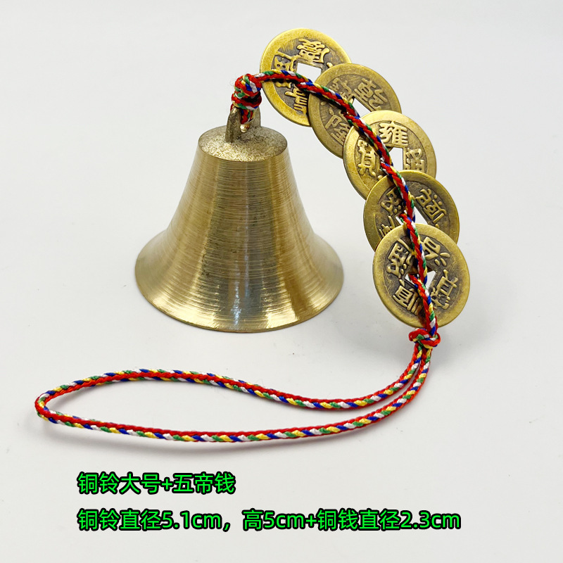 真鍮の銅鈴風鈴は銅銭五帝銭ラッパの銅鈴の門を飾って車を飾って小さいサイズの五色線の家庭を掛けます。
