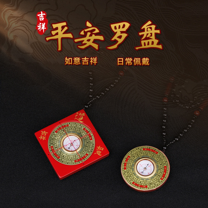 文王工芸風水ストラップは、正方形のコンパスを掛けて円形の太極コンパスのアクセサリーを掛けます。