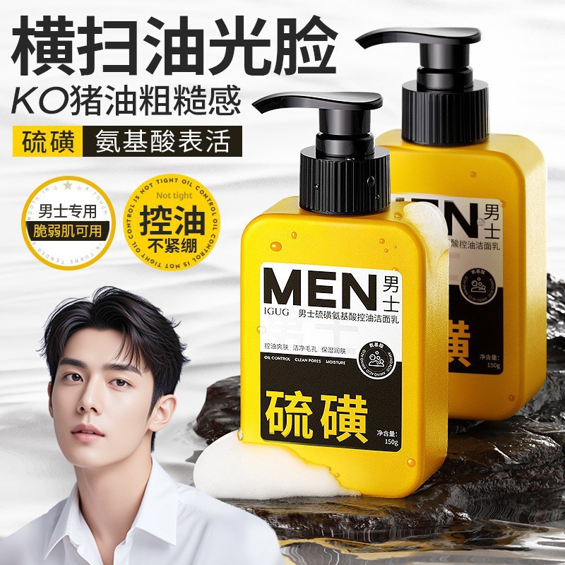 IGUGメンズ洗顔料さわやかコントロールオイル黒頭アミノ酸硫黄洗顔料男性専用洗顔料