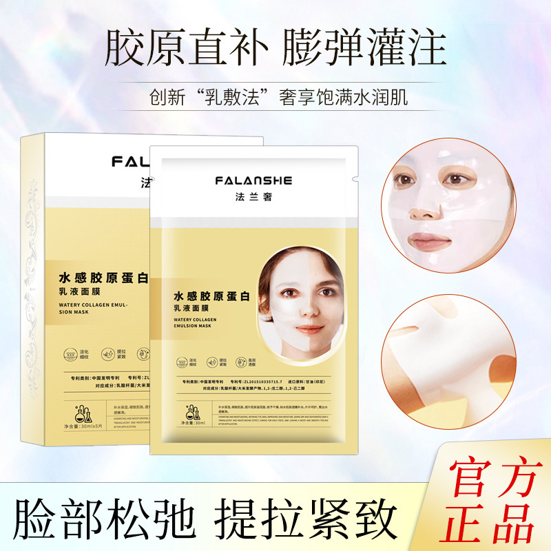 フランネルの豪華な水感のコラーゲンの乳液のマスクの水晶はきつくて白い変化のマスクの卸売りの上で2枚の代行を代行します。