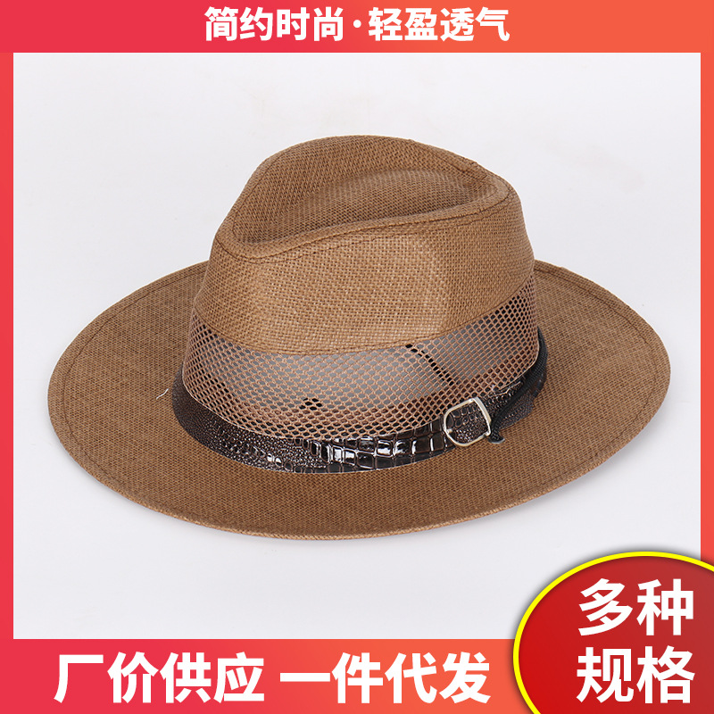 卸売リネンシルクハット中年および高齢者の夏の日よけ帽子メンズジャズハットサンシェード通気性紳士帽子屋外旅行