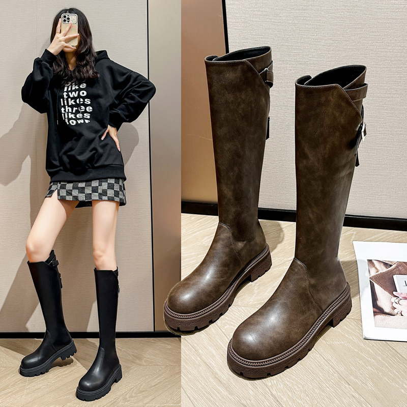 長靴の女性2024秋冬の新型ブーツは太っています。