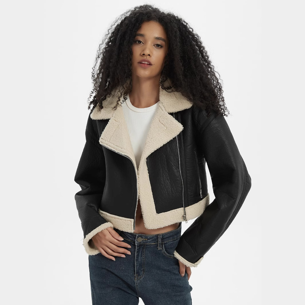 国境を越えた欧米風の襟付き毛皮の一体コート女性2024冬のベルベット保温ジャケットpu皮ジャケット
