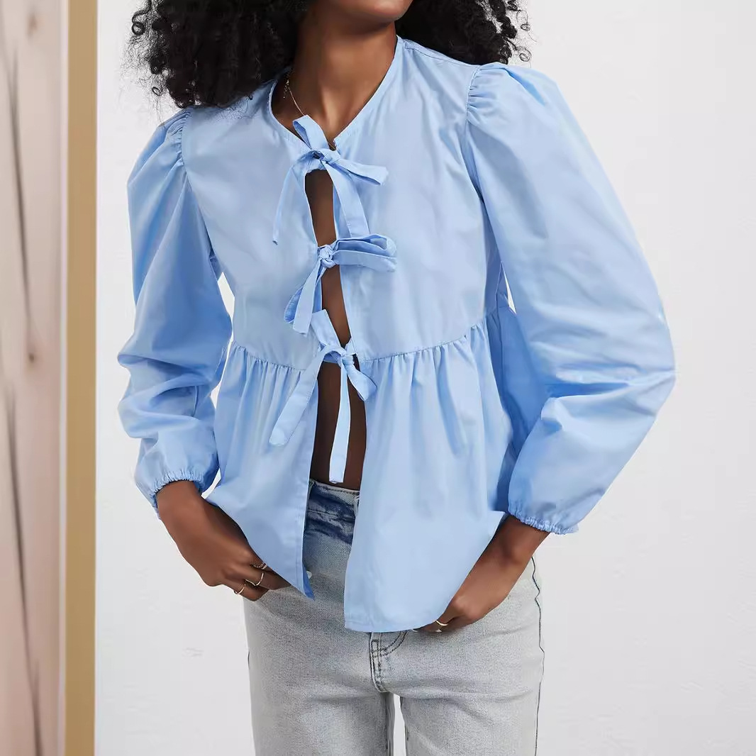 国境を越えた女装卸売り欧米風春夏の新型ゆるい甘い蝶ネクタイ長袖シャツ上着