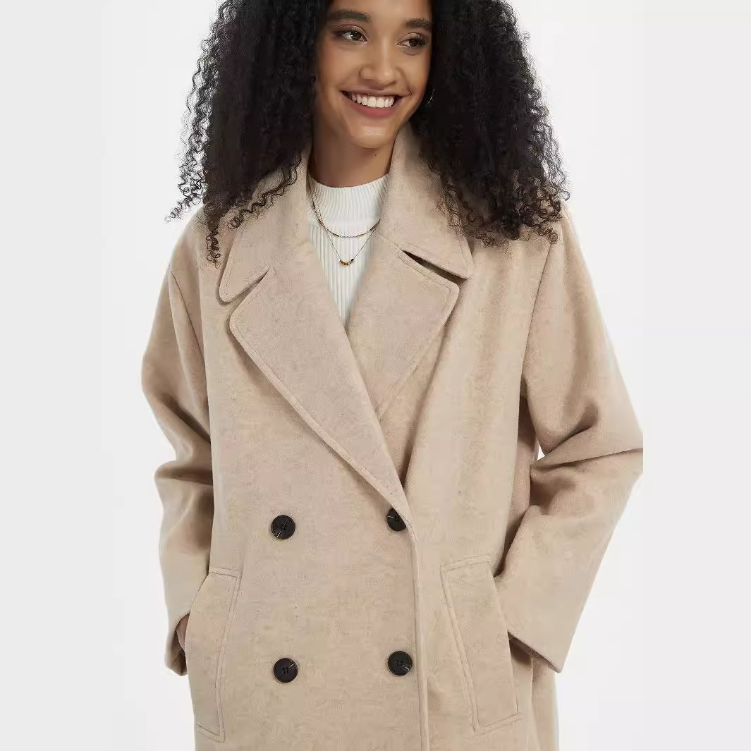 国境を越えた婦人服卸売り欧米風ファッションゆるいダブルボタンコート気質通勤カジュアル毛コート秋冬